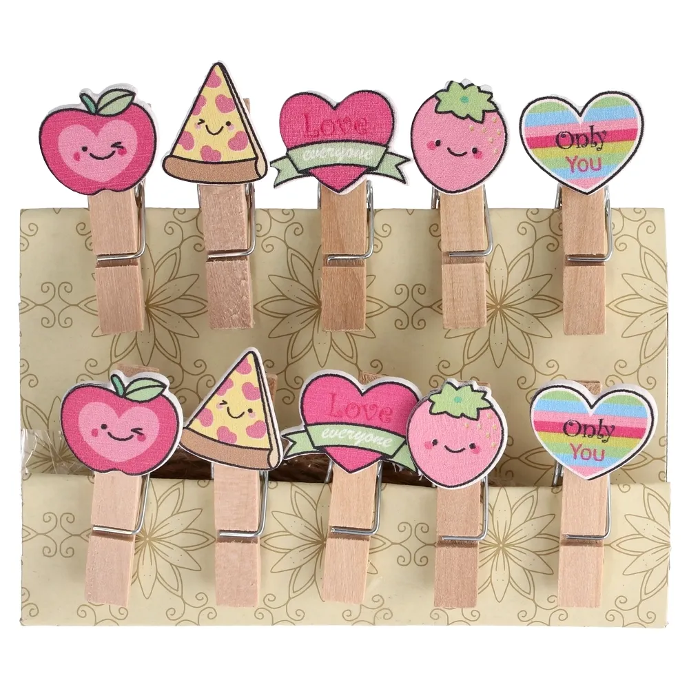 Drvene kraft štipaljke u miksu motiva (10 kom). Idealne za DIY projekte, kačenje fotografija, dekoraciju poklona i organizaciju papira. Čvrsto drže, lagane su i višekratne. Prirodni izgled lako se uklapa u svaki stil.