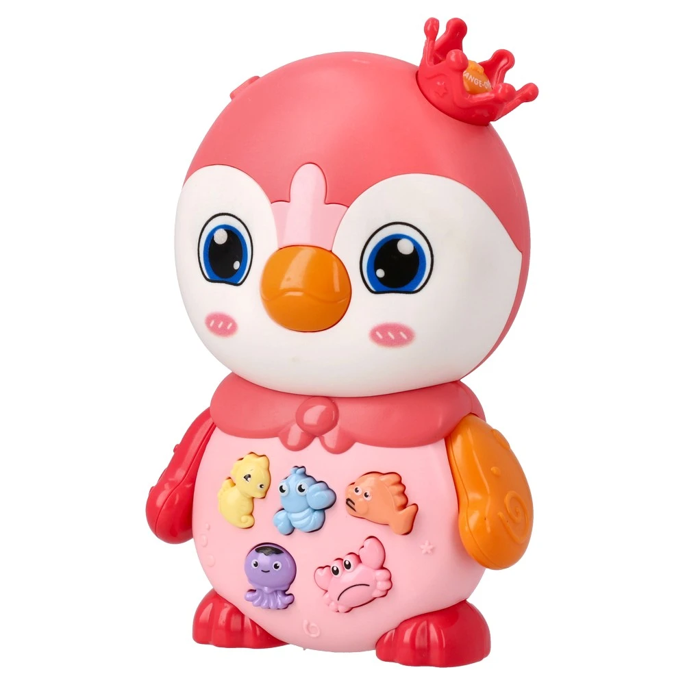Elektronska muzička igračka u obliku pingvina od plastike. Tipke u obliku morskih životinja podstiču istraživanje, slušnu percepciju i finu motoriku. Praktična za ranu igru kod kuće; zabavna igra za djecu i predškolce.
