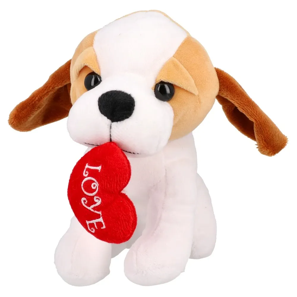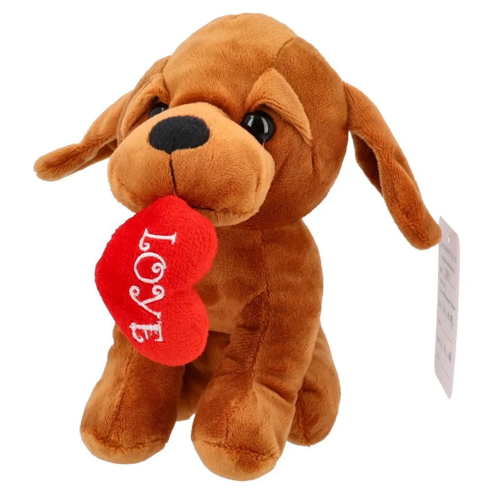 Kompaktna plišana igračka pas, visina 18 cm, od mekog pliša. Modeli u miksu, svaki drži crveno srce s natpisom Love. Namjena: nježna igra i dekoracija. Praktičan poklon za izražavanje pažnje, ugodan na dodir.