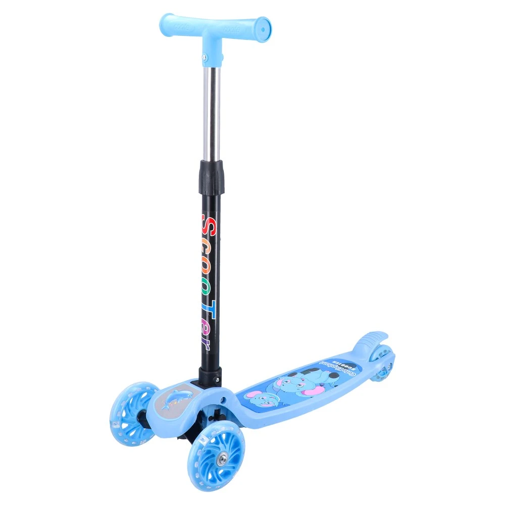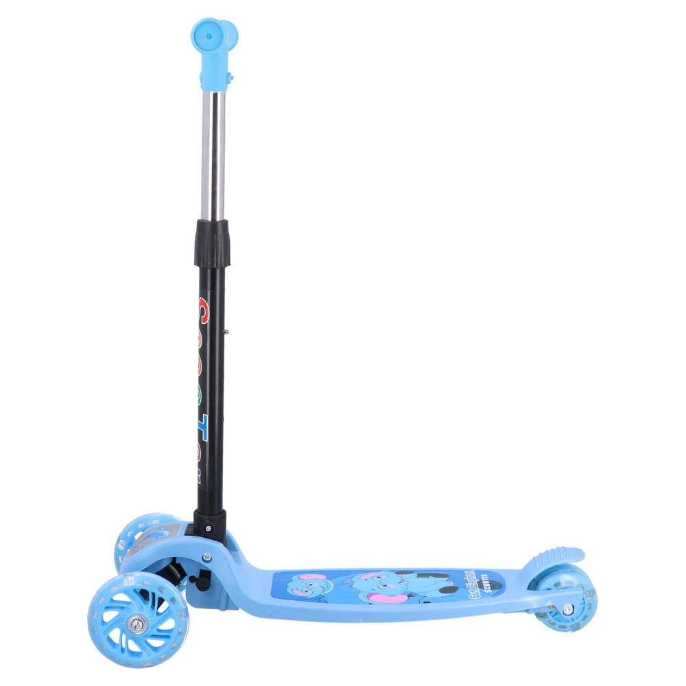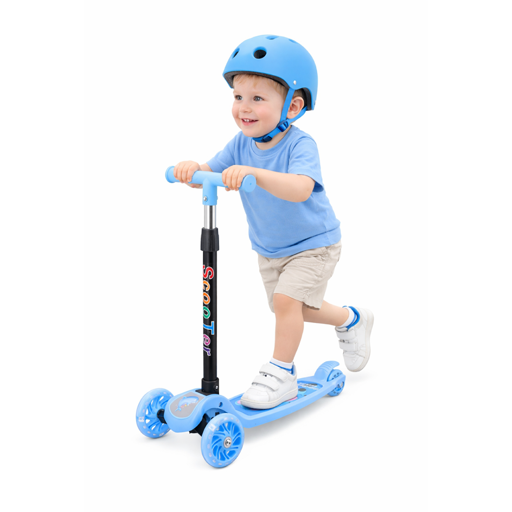 Trotinet za djecu uzrasta 3+ dizajniran za upotrebu na otvorenom, plave boje. Opremljen je svetlećim točkovima koji dodaju zabavu i povećavaju vidljivost tokom vožnje. Ima maksimalnu nosivost do 35 kg, što ga čini idealnim za male vozače.