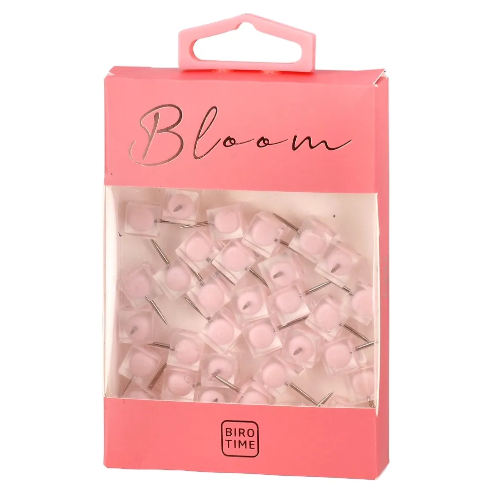 Emerald Bloom pritiskači s kockastom plastičnom, ružičastom glavom i metalnom iglom. Za oglasne table i panoe od plute, mape i planere. Stabilno pričvršćuju papire, lako se postavljaju i uklanjaju, uredan izgled radnog prostora.
