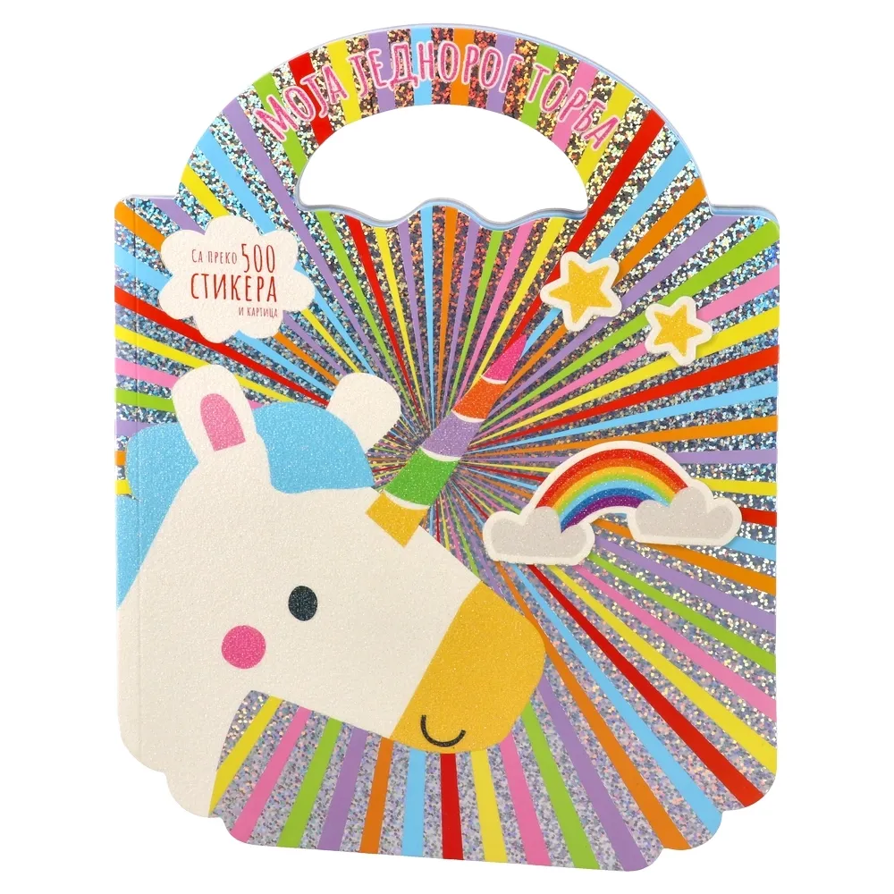 Sticky knjiga sa stikerima (naljepnice): svjetlucavi jednorog motiv. Sadrži preko 500 stikera i kartica na papiru. Idealna za kreativnu igru, ukrašavanje i vježbanje fine motorike. Praktična ručka za lako nošenje.