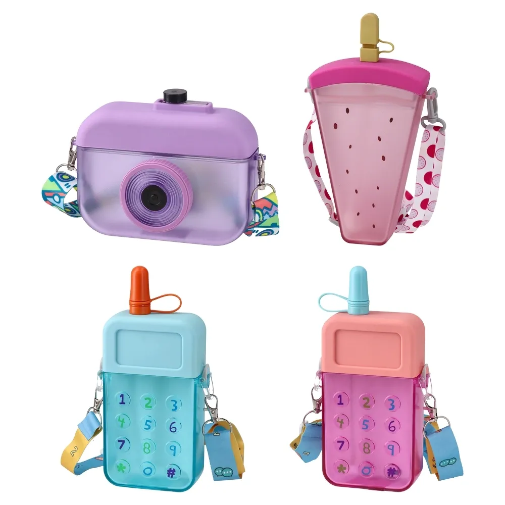 Verano plastične flašice za vodu, 380 ml. Idealne za djecu u školi, šetnji ili na putu. Lagane i praktične, sa trakama za nošenje preko ramena. Dolaze u mix bojama i zabavnim oblicima.