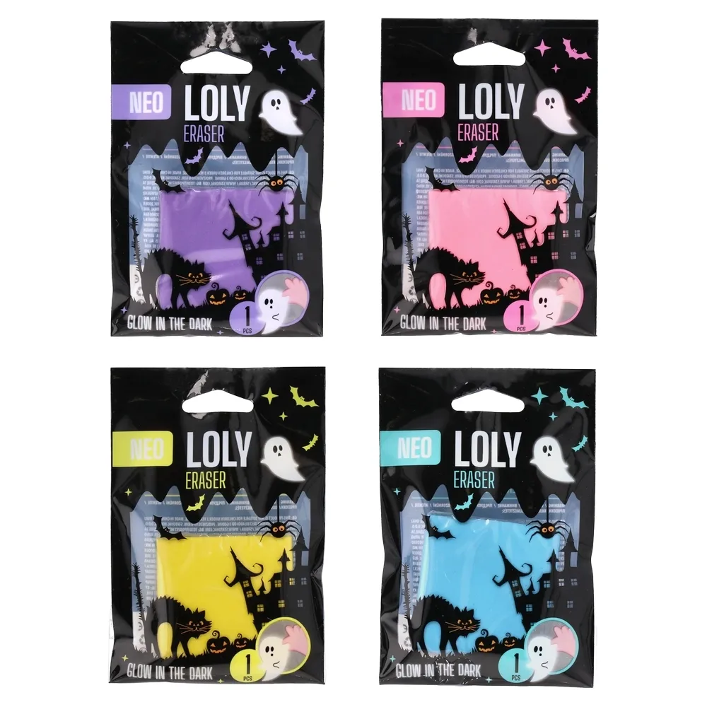 Loly, gumica, Ghost – praktična gumica za precizno brisanje crteža i školskih bilješki. Dekor sa duhovima, svijetli u mraku za lakše pronalaženje u torbi. Više boja. Idealna za školu i kancelariju. Zabavan dizajn.