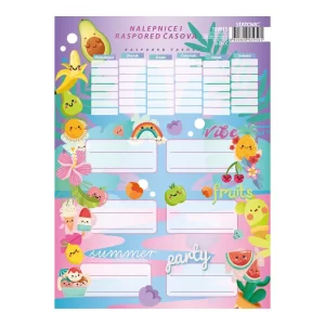 Nalepnice za sveske sa rasporedom časova neizostavan su deo školskog pribora svakog đaka. Sadrži raspored časova za svaki radni dan i 6 nalepnica za sveske.