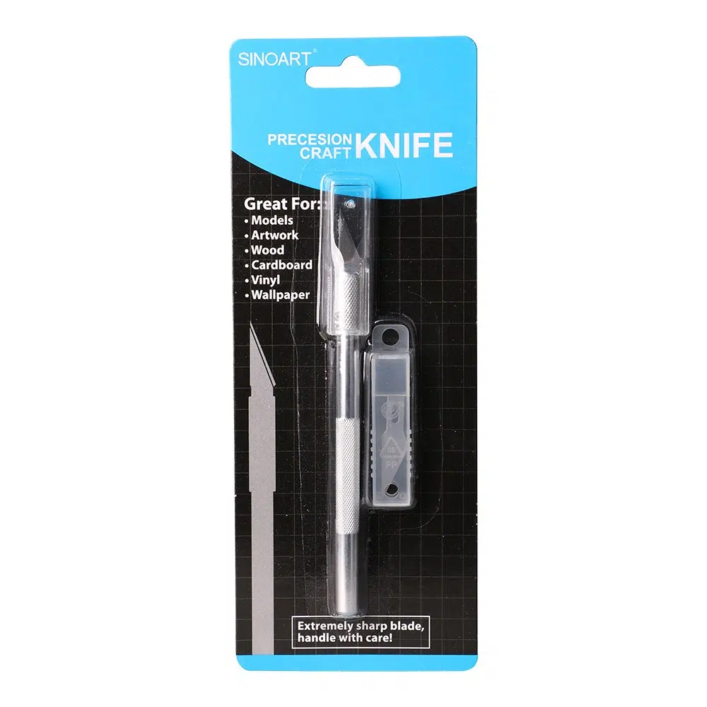 Odličan ručni nož za precizno sečenje napravljen je od nerđajućih materijala. Ovo je nezamenljiva alatka za sve tehnike u kojima je neophodno precizno rezanje. Njime precizno možete seći papir, penu, karton, foliju, salvete za dekupaž i još mnogo toga. Mogućnost zamene nožića. Sadrži nož i 3 nožića.